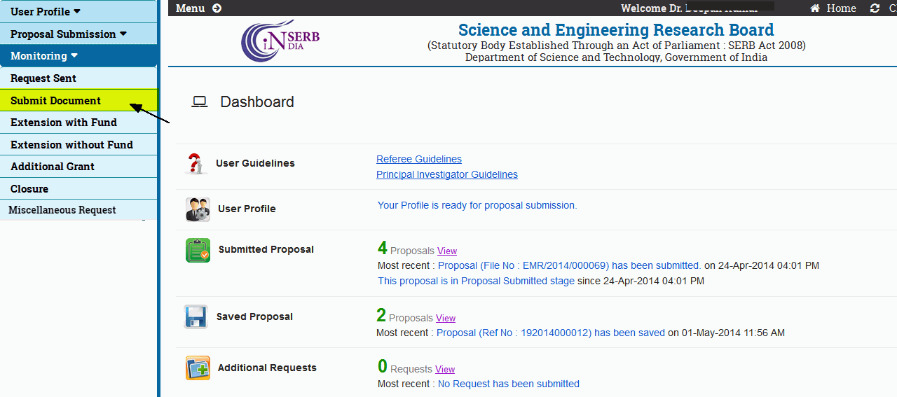 This option is to resubmit the documents asked by Member Secretary On selecting the option named Submit Document the page will appear as shown in Figure 6.2..