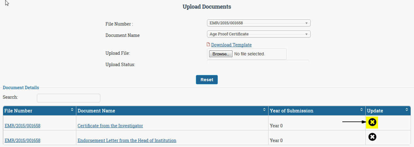Now click on the cross icon corresponding to the document you wan to resubmit as shown in Figure 6.6.
