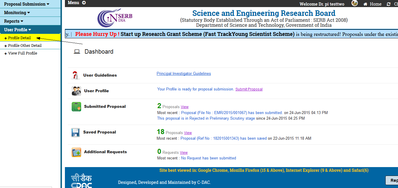 Note : This form is mandatory to be filled before submitting the Proposal Submission Details. If you do not fill in this form and directly switch to Proposal Submission then it wont allow you to submit Proposals.