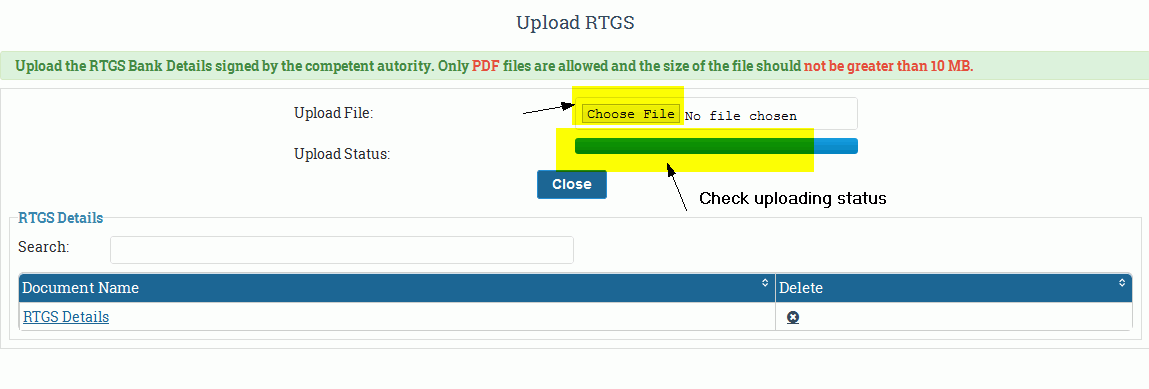 Uploading of RTGS details signed by the competent authority.