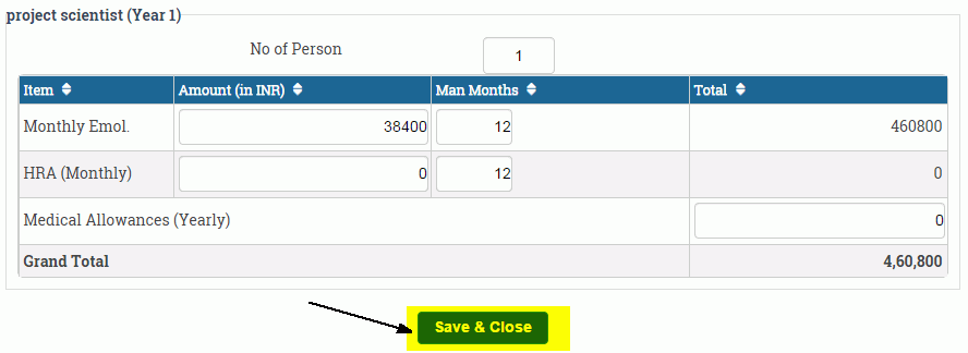 After saving the quotation details , you have to provide the year wise salary breakup for manpower.