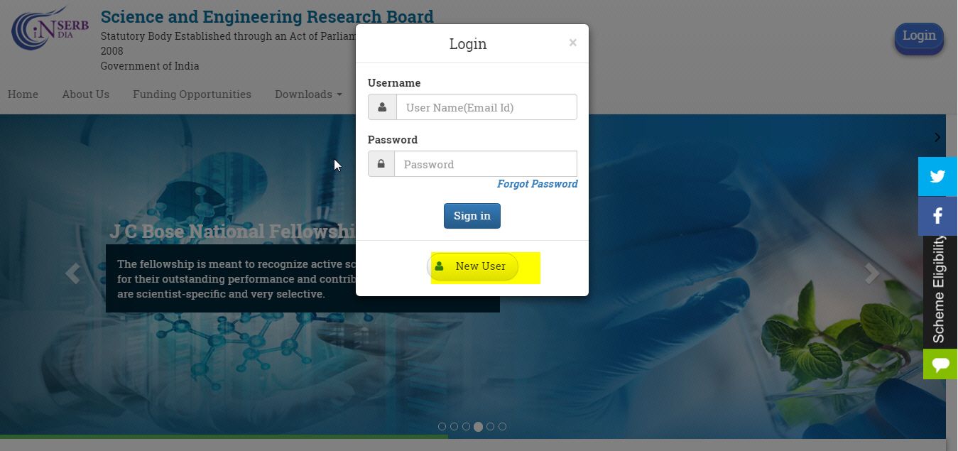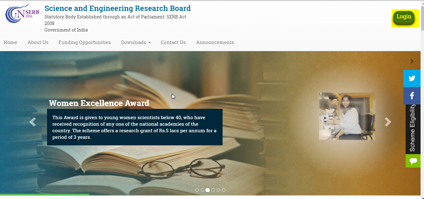 Step 1. Visit "www.serbonline.in" . You can see a "LOGIN" button on the top right corner as shown in figure 1.1 . Click on the Login button.