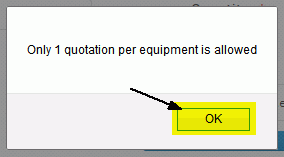 If you try to upload more than one quotation per equipment ,the following message appears as shown in Figure 4.9.